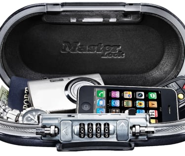 Stainless steel cable to secure it to pole or other immovable object. This can only be released if you know the combination.